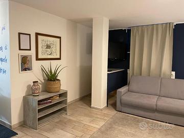 Uno splendido appartamento in taverna (piano seminterrato) con aria condizionata, TV a schermo piatto, riscaldamento, cucina abitabile, camera da letto matrimoniale e bagno con doccia. L'ampio soggiorno accoglie un divano letto matrimoniale e un grazioso angolo per mangiare tutti insieme.