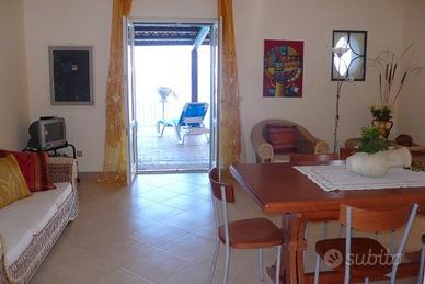 Affittiamo bellissimo appartamento di 180m² in villa bifamiliare composto da 3 camere da letto, 3 bagni, soggiorno, cucina, ampia terrazza esterna attrezzata con lettini da sole e tavolo da pranzo, giardino con barbecue. La terrazza è direttamente collegata con un comodo sentiero privato di ca. 150m per arrivare al mare e la splendida spiaggia.