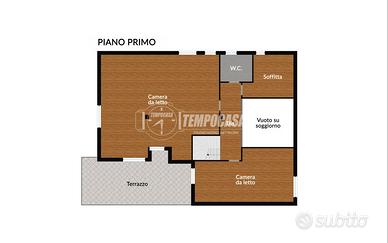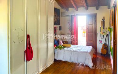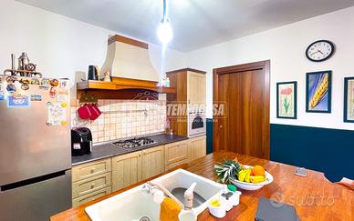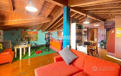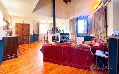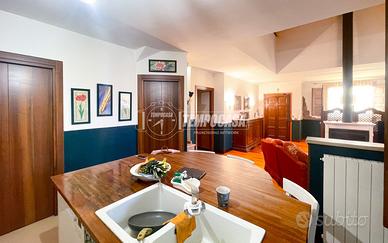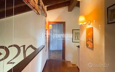 Al piano terra si accede ad un luminoso soggiorno affiancato da una spaziosa cucina abitabile con accesso diretto ad una comoda cantina. La zona notte ospita tre camere da letto, di cui una dotata di cabina armadio, oltre a un elegante bagno con vasca e un pratico ripostiglio. Salendo al primo piano, si apre una splendida mansarda abitabile che offre un ambiente versatile e accogliente. Qui troviamo un'ulteriore camera da letto con accesso ad un terrazzo privato, un secondo bagno con doccia ed un ulteriore ripostiglio, perfetto per ottimizzare gli spazi.
