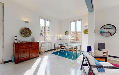 La Tempocasa di Rapallo propone in vendita un ampio appartamento quadrilocale di circa 120 mq, situato al secondo piano di una palazzina in zona tranquilla e ben servita. La soluzione si distingue per la distribuzione funzionale degli spazi e la luminosità degli ambienti, resa ancora più gradevole dalla presenza di un comodo balcone vivibile. L'ingresso si apre su un luminoso e spazioso soggiorno con cucina a vista, un ambiente moderno e conviviale che rappresenta il cuore della casa. La zona notte, ben separata, ospita due camere matrimoniali di generose dimensioni, ideali per garantire comfort e privacy, servite da due bagni finestrati, uno dotato di doccia e l'altro di vasca. A completare la proprietà sono presenti un pratico ripostiglio e un locale lavanderia, che rendono la casa ancora più funzionale e adatta alla vita quotidiana. L'appartamento si presenta in ottime condizioni interne, con spazi ben distribuiti e ambienti ariosi, offrendo una soluzione abitativa ideale per famiglie che cercano comodità, eleganza e vicinanza al centro città senza rinunciare alla tranquillità.