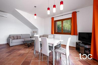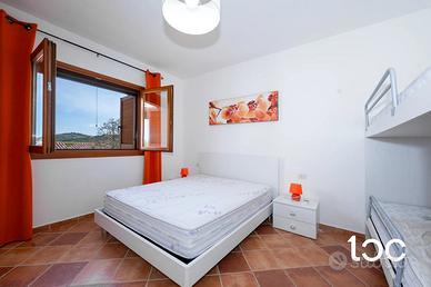A Maiorca, nella splendida località di Budoni (SS), all'interno del nuovo e curato villaggio residenziale "Le Bacche di Maiorca", si propone in vendita un appartamento di recente costruzione con splendida vista mare, perfetto per chi cerca tranquillità, comfort e vicinanza ai servizi. Il villaggio, elegante e riservato, è dotato anche di una splendida piscina condominiale, ampia, curata e ideale per trascorrere momenti di relax e godersi le giornate di sole in un contesto armonioso e raffinato. L'immobile si trova in una posizione riservata e silenziosa, immerso nella pace della natura ma a soli due minuti dal centro del paese, dove si trovano ristoranti, negozi, bar e tutte le principali comodità, oltre alle rinomate spiagge di Budoni facilmente raggiungibili. L'appartamento, situato al piano rialzato, si distingue per la luminosità degli ambienti e la piacevole sensazione di accoglienza che trasmette sin dal primo ingresso. La zona giorno è ampia e ben articolata, con un soggiorno spazioso e arioso che si affaccia su una grande veranda coperta, caratterizzata da travi in legno a vista e da una magnifica vista mare che regala scorci suggestivi e momenti di autentico relax. La veranda si apre su un piccolo ma curato giardino, ideale per godersi la brezza marina e le serate estive in totale privacy. La zona notte è composta da due camere da letto di generose dimensioni: la prima, matrimoniale, è dotata di una porta finestra che conduce al cortile posteriore, offrendo una piacevole sensazione di riservatezza e continuità con gli spazi esterni; la seconda è una spaziosa camera tripla, arredata con due letti a castello e un letto matrimoniale, perfetta per ospitare famiglia e amici in totale comfort. Completa la proprietà un ripostiglio e un bagno finestrato, funzionale e ben rifinito. A completamento dell'immobile vi sono un comodo garage situato al piano sottostante e un posto auto esterno riservato, che rendono questa soluzione abitativa ancora più pratica e inte