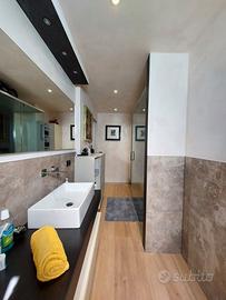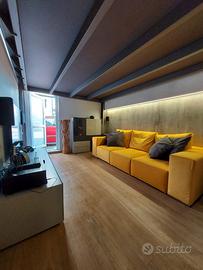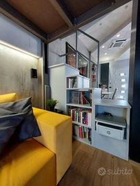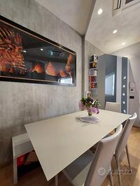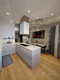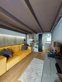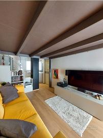 Si propone sfizioso appartamento di design, dotato di tutti i comfort e tecnologie all'avanguardia. L'unità, sita al piano terra con ingresso indipendente, si compone di cucina abitabile dotata di piastra a induzione, frigorifero ventilato nofrost Bosh, microonde, forno multifunzione a convenzione e vapore, lavastoviglie, frigo vini, potente cappa aspirante e ripiano in quarzo; elegante salotto con divano trasformabile in letto di una piazza e mezza; camera da letto su innovativo soppalco mobile certificato telecomandato con guardaroba a muro estraibile; bagno finestrato con cabina doccia iper tecnologica multifunzione (bagno turco, cromoterapia, aromaterapia, cascata emozionale, rubinetti termostatici, bluetooth); zona lavanderia con lavatrice lavasciuga in vano con porta a filo muro. All'esterno posto macchina. Lavori di ristrutturazione terminati nel 2020, impianto idrico ed elettrico a nuovo, pavimento in gres porcellanato effetto legno, mobili di marca creati su misura, riscaldamento a pavimento, pompa di calore Daikin, climatizzatore idronico, serramenti nuovi con tapparella motorizzata. Grazie ad un sistema completamente elettrico e privo di gas, si ottiene un'ottima riduzione sui costi delle bollette. Prezzo comprensivo dell'intero arredo. Per informazioni e visite, contattare il