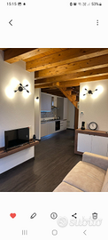 Splendido appartamento panoramico con vista sulla valle moderno e con tutti I comfort molto luminoso e soleggiato adatto a vacanze in famiglia o per un weekend fuori porta . L appartamento è composto da ampio soggiorno con cucina e comodo divano letto matrimoniale e un bagno finestrato! Accedendo con una comoda scala in legno troviamo una camera matrimoniale con balconcino con vista panoramica e un altro bagno con doccia molto grande!