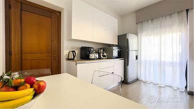 Il luminoso appartamento dispone di una duplice esposizione e si compone internamente di ingresso, ampio soggiorno con balconata di pertinenza, cucina abitabile con accesso alla seconda balconata, bagno di servizio con zona lavanderia, disimpegno con accesso alla zona notte, completa di quattro camere da letto, di cui due doppie, una matrimoniale ed una singola attualmente adibita a cabina armadio, servite da due rifiniti bagni, uno con vasca ed uno con box doccia.