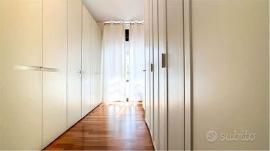 L'elegante appartamento presenta finiture di pregio ed è impreziosito da una splendida pavimentazione in parquet, che rende ogni ambiente caldo e accogliente.
