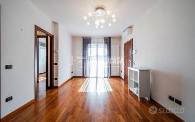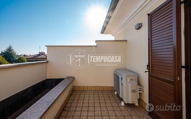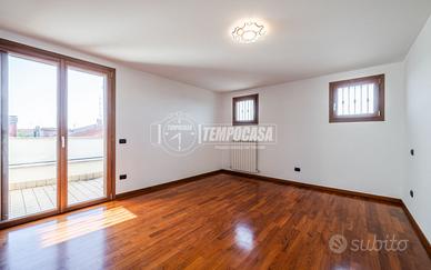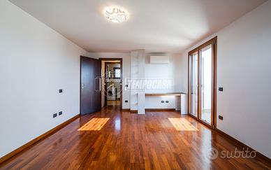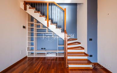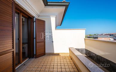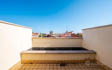 L'appartamento è su due livelli e si compone di ingresso sul soggiorno con accesso ad uno splendido terrazzo loggiato, perfetto per pranzi-cene all'aperto o momenti di relax grazie alla sua totale privacy, cucina separata, disimpegno con accesso ad una camera matrimoniale ed al bagno. Al piano superiore, collegato con scala interna tradizionale e non a chiocciola, troviamo una seconda camera enorme (che può anche essere adibita a secondo soggiorno o area relax) con accesso ad un secondo terrazzo con giardino pensile e un secondo bagno finestrato di oltre 12mq.
