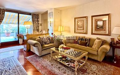 Nel cuore pulsante della città, all'interno di un raffinato complesso residenziale del 2004, completamente privo di barriere architettoniche e servito da doppio ascensore, si propone un attico di assoluto prestigio di 237 mq, dove eleganza, luce e spazio si fondono. L'ingresso introduce a una scenografica zona living impreziosita da parquet in Doussié Africa, e aperta su un terrazzo di circa 50 mq, autentico salotto a cielo aperto, perfetto per momenti di relax e rappresentanza. La cucina abitabile, dal design ricercato, è valorizzata da un suggestivo muro in pietra accanto alla stufa a pellet e da una penisola pranzo che invita alla convivialità. Da qui si accede a un secondo terrazzo, attrezzato con forno e punto acqua, pensato per vivere appieno l'outdoor in ogni stagione. La zona notte accoglie una suite padronale esclusiva con cabina armadio e bagno en suite, affiancata da un secondo bagno con vasca e da due camerette, di cui una doppia in parquet, entrambe con accesso a un terrazzo riservato. Un'elegante scala in cocciopesto conduce al piano superiore, dove si apre una mansarda completamente abitabile di grande fascino, concepita come spazio polifunzionale: living con angolo cucina, ulteriore servizio e una magnifica vetrata che dona continuità visiva, luce e carattere, rendendo l'ambiente ideale come area relax, studio o spazio ospiti. L'intera unità abitativa è avvolta dalla luce naturale grazie alla tripla esposizione di cui gode. Una residenza unica e irripetibile, pensata per chi desidera vivere il centro città con il massimo livello di comfort, privacy e raffinatezza, senza rinunciare a terrazzi, luminosità e finiture di pregio. A completamento dellla proprietà vi è un box quadruplo di 45mq e un ulteriore spazio di deposito di 22mq - Classe: D