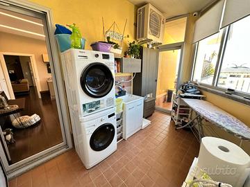 La cucina è abitabile e funzionale, anch'essa con affaccio vista mare, e ha accesso diretto a una veranda chiusa e regolarmente sanata, completa di dispensa e lavanderia esterna coperta. Tutto pensato per un uso comodo e pratico, senza rinunciare all'estetica.