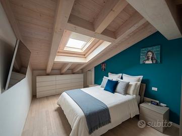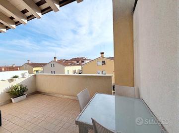 Situato in una posizione strategica e servitissima, vendiamo un elegante appartamento duplex del 2014, posto al secondo e ultimo piano di una palazzina moderna servita da ascensore. GLI SPAZI: LUCE E COMFORT L'abitazione si distingue per la distribuzione funzionale e le finiture di pregio scelte fuori capitolato, che donano un carattere unico agli ambienti: Zona Giorno: Un ampio e luminoso soggiorno di ben 35 mq, ideale per cene in compagnia, con accesso diretto a due terrazze vivibili (10 mq e 5 mq). Cucina: Possibilità di includere la cucina Arredo3 completa di elettrodomestici di alta gamma, perfettamente integrata nello spazio. Zona Notte Piano Primo: Disimpegno con pratico ripostiglio, prima camera matrimoniale e un bagno finestrato. Piano Superiore: Un secondo bagno scenografico dotato sia di doccia che di vasca idromassaggio, un'ampia camera matrimoniale e una terza stanza versatile (ideale come cameretta o ufficio per lo smart working). Appartamento parzialmente arredato (80%). TECNOLOGIA E ACCESSORI La casa è pronta per essere abitata e garantisce un'ottima efficienza energetica (Classe B): Riscaldamento a pavimento piano primo Aria condizionata (caldo/freddo) installata su entrambi i livelli. Pavimentazioni e sanitari di design (extra capitolato). Garage doppio in lunghezza di oltre 28 mq e ampia disponibilità di parcheggio esterno per gli ospiti.