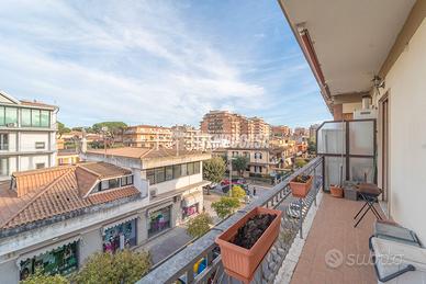 L'appartamento si apre su un comodo ingresso che conduce alla luminosa zona giorno con cucina a vista e soggiorno, un ambiente accogliente e ben distribuito, impreziosito da una porta finestra che permette l'accesso allo spazioso balcone con affaccio su via Boezio, perfetto per godersi momenti di relax all'aria aperta.
