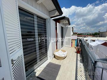 La mansarda si sviluppa su una superficie interna di circa 90 mq, con uno spazio esterno di 17 mq, composto da un balcone e un terrazzino di circa 7 mq, perfetti per momenti di relax all'aperto.