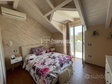 Al secondo piano si trova una splendida mansarda completamente ristrutturata, che offre comfort e luminosità. La proprietà è dotata di impianto fotovoltaico e condizionatori, assicurando efficienza energetica e un clima ideale tutto l'anno.