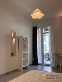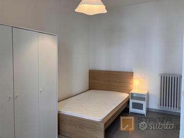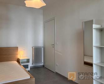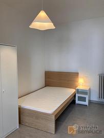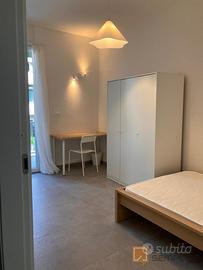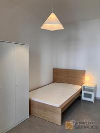 completamente arredata, composta da letto singolo da 120cm, comodino armadio a 3 ante, scrivania, sedia, libreria, specchio e lampada da tavolo