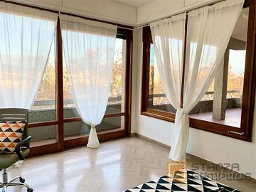 Situato al sesto piano, molto luminoso e spazioso. 170 mq di superficie. È composto da cucina e ampia zona giorno, 2 Bagni e 7 stanze singole, di cui 6 con balcone + ampia terrazza comune. L'appartamento è ottimamente ristrutturato in funzione di tutto ciò che occorre ai nostri studenti. Dotato di WI-FI, lavatrice, cucina equipaggiata.