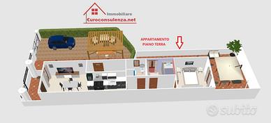 La struttura è composta da 2 appartamenti nuovi, realizzati con materiali di qualità e ottime finiture. Ogni appartamento è composto da: 2 camere da letto, cucina già installata solo al piano primo, bagno funzionale. Il piano terra dispone di uno scoperto retrostante e laterale, perfetto per mangiare all'aperto e rilassarsi in totale privacy. Il piano primo ha un comodo scoperto laterale di accesso, funzionale e riservato. L'appartamento al piano terra è attualmente accatastato come locale. È stato già tramezzato e arredato come abitazione, quindi, con un semplice cambio di destinazione d'uso, può diventare un comodo appartamento. In alternativa, può essere utilizzato come locale commerciale, con grandi potenzialità per attività di vario tipo, grazie alla disposizione degli spazi e alla posizione.
