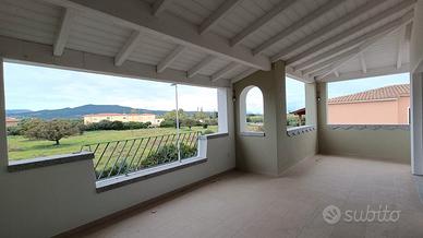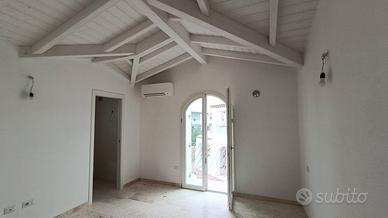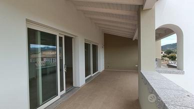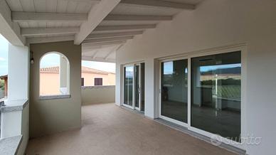Budoni via Piemonte, appartamento di nuova costruzione IN PRONTA CONSEGNA, piccolo ed elegante complesso residenziale a soli 600 mt dalla spiaggia La Stella Marina e comodo al centro ed a tutti i servizi raggiungibili con una piccola e gradevole passeggiata Il comune di Budoni e facilmente raggiungibile sia dal Porto che dall'aeroporto di Olbia Costa Smeralda percorrendo la superstrada 131 per 30 km, si arriva in 20 minuti. Il paese da anni e in forte espansione, adatto sia per passare le vacanze ma anche per poterci vivere durante tutto l'anno, infatti tutti i servizi li troviamo aperti anche in bassa stagione. all'immobile si accede dall'ingresso pedonale con un piccolo giardino, scala semichiusa che ci porta al piano dove troviamo un portico coperto di 27 mq, sala con angolo cottura con doppia vetrata scorrevole che da sul portico, disimpegno, camera matrimoniale con bagno, altro bagno e camera matrimoniale con uscita sul balcone. Interni rifiniti elegantemente con i tetti in legno bianco lamellare, pavimenti in marmo di Orosei, porte interne in legno massello bianco, prese Tv in tutti gli ambienti In dotazione: impianto fotovoltaico- riserva idrica con pompa sommersa - boiler elettrico - pompe di calore in tutti gli ambienti - doccia esterna caldo/freddo- posto auto privato Ottimo sia come investimento che come casa di villeggiatura.