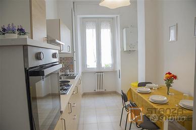 Appartamento di 130mq ristrutturato situato al 1 piano con in palazzo con custode. L'appartamento è composto da cucina, bagno e 4 ampie stanze singole. L'appartamento è ottimamente ristrutturato e con arredi nuovi in funzione di tutto ciò che occorre ai nostri studenti. Dotato di WI-FI, lavatrice, cucina equipaggiata.