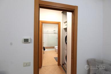 In contesto residenziale del 2003, esterno in mattoni a vista e ben curato, abitazione al piano terra con spazi ben distribuiti. L'ingresso avviene tramite porta blindata e conduce alla luminosa zona giorno dotata di aria condizionata, con cucina inserita in una nicchia riservata. Gli ambienti affacciano su una comoda area esterna piastrellata, ideale per momenti di relax all'aperto. La zona notte ospita la camera matrimoniale anch'essa con spazio esterno piastrellato ed il bagno finestrato completo di doccia. L'immobile è dotato di serramenti in legno con doppio vetro e inferriate di sicurezza. Completano la soluzione una cantina al piano seminterrato e un comodo box auto, con ascensore che collega fino al piano interrato. Per maggiori informazioni o per fissare una visita, contattaci anche su WhatsApp al