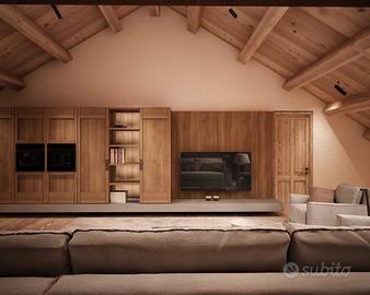 Servito da ascensore, l'attico è caratterizzato da ampi e luminosi spazi. Al suo ingresso, un corridoio accoglie un comodo bagno di servizio. La zona giorno open space è spaziosa e ben illuminata, con un'area relax, una zona pranzo e due ampi velux panoramici che offrono una vista suggestiva. La cucina moderna, completamente accessoriata e separata, è anch'essa dotata di un grande velux, che aggiunge luce naturale e un'ulteriore dimensione alla stanza.