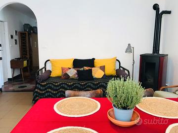 Con bellissima vista su Castello di Tagliolo e colline Monferrato, 5 minuti auto da OVADA e da ingresso A26, 45' da Genova e da Alessandria, facile parcheggio, in paese ma al limitare della campagna con bellissime passeggiate tra boschi e vigne, vendesi ampio luminoso appartamento, libero, abitabile, buone condizioni, di circa 100mq con grande terrazza di 40mq, con affaccio sulle colline del Monferrato, che occupa tutto il 2o piano di edificio storico, senza ascensore, ed è composto da due appartamenti con ingresso indipendente ma comunicanti tra di loro, accatastati come unica unità immobiliare; l'appartamento grande, 60mq, è composto da cucina e spazioso soggiorno (entrambi con affaccio sulla grande terrazza), bagno con vasca, corridoio/ripostiglio, 1 camera matrimoniale da cui si accede all'appartamento più piccolo, 35mq, composto da 1 camera matrimoniale, soggiorno con angolo cottura/lavatrice, entrambi con finestre vista panoramica su castello Tagliolo, oltre a bagno, corridoio/ripostiglio; riscaldamento con caldaia e termoconvettori metano autonomi, più stufa pellet in soggiorno; piccolo vano cantina; parcheggio pubblico gratuito a 250m; no condominio; classe energetica in corso certificazione (G?); impianto elettrico da mettere a norma a cura dell'acquirente; la rimanenza del mutuo ancora in corso può essere trasferita al compratore e scalata dal prezzo oppure estinta al rogito; richiesta 135.000? trattabili;