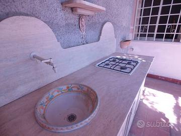 Appartamento piano terra 90mq trilocale piu' portico con cucina esterna , doccia e giardinetto Di 50 mq circa con vista panoramica sul mare e taormina