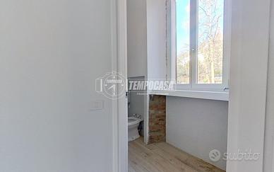 La soluzione presenta pavimentazione in parquet in legno di rovere in tutti i locali ad eccezione del bagno in gres porcellanato, infissi in PVC/doppio vetro, porta blindata e riscaldamento autonomo a radiatori.