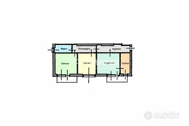 L'immobile, sito al terzo ed ultimo piano senza ascensore, è così disposto: ingresso, soggiorno con annesso balcone, cucinotto con annesso balcone, disimpegno, due camere da letto matrimoniali di cui una con annesso balcone e bagno finestrato.