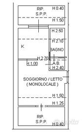 Si presenta con ingresso nella zona giorno/notte, sulla destra Bagno finestrato con box doccia. A seguire la cucina separata, anch'essa ovviamente finestrata.