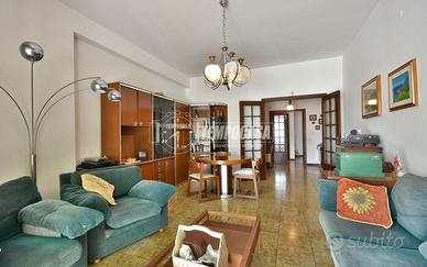 L'appartamento di 120 mq è composto da un grande soggiorno e cucina con ambienti ben divisi. La zona notte comprende tre camere da letto di cui una matrimoniale e da due bagni entrambi finestrati. Sul pianerottolo dell'entrata, si trova un comodo ripostiglio, ideale come spazio di deposito.