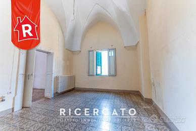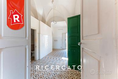 Gruppo Ricercato Immobiliare ha il piacere di proporre in esclusiva la vendita nel cuore del suggestivo centro storico di San Donato di Lecce, un abitazione indipendente terra-cielo risalente alla fine dell'Ottocento, con affaccio diretto sulla splendida Chiesa Madre e sulla piazza principale. L'immobile, caratterizzato da autentici elementi storici quali volte a stella, pavimenti in cementine d'epoca e ampi spazi esterni vivibili, offre un perfetto connubio tra fascino tradizionale e grandi potenzialità di personalizzazione. Necessita di lavori di ristrutturazione per esprimere al meglio il proprio valore e adeguarsi agli standard abitativi moderni. La proprietà si sviluppa su due livelli principali: Il primo piano di circa 140 mq accoglie una luminosa sala-studio, un'ampia sala da pranzo con balcone panoramico sulla Chiesa Madre, una cucina abitabile con terrazzino interno e accesso al lastricato solare, ideale per momenti di relax o convivialità all'aperto; ed una spaziosa camera da letto matrimoniale, impreziosita dalle caratteristiche volte a stella e dai pavimenti originali ben conservati, completa il piano un bagno finestrato. Il piano terra è composto da due vani ed un bagno, perfetti per creare un appartamento indipendente, uno studio professionale o una dependance per ospiti. Un terzo ingresso laterale conduce a un ulteriore ambiente, attualmente non collegato internamente ma facilmente unibile tramite scala esistente ma attualmente murata. A completare la proprietà un prezioso box auto. La casa dispone di doppi ingressi indipendenti, spazi luminosi e versatili, e rappresenta un'opportunità unica come residenza di prestigio, casa-studio o struttura ricettiva di charme nel cuore del Salento. La posizione centrale, a breve distanza dalle incantevoli marine di Torre dell'Orso e Otranto, rende questa dimora ideale anche per chi desidera una seconda casa o un investimento turistico tipicamente salentino. Libera e disponibile da subito.