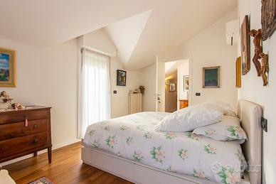 Salendo le scale troviamo una luminosa mansarda composta da una camera matrimoniale con bagno padronale, una camera doppia anch' essa dotata di bagno privato, una stanza guardaroba, e di 3 terrazze, tra le quali una abitabile di circa 35 mq ideale per le vostre cene estive. Possibilità di ricavare la quarta camera in mansarda. A completare garage e cantina privata.