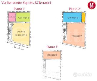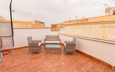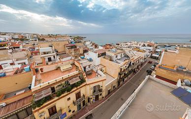 Terrasini, trilocale panoramico di circa 75 mq, con due terrazze con vista sul mare. L'appartamento è situato al primo e secondo piano di una palazzina storica ristrutturata, l'ingresso è su un ambiente living con cucina e soggiorno, balcone sulla Via principale. Zona notte: camera matrimoniale, una cameretta - ideale anche come studio - e un bagno finestrato, ristrutturato e dotato di doccia. Piano superiore: soggiorno aggiuntivo, un camerino e un ripostiglio. Terrazza 26 mq. Cod. Rif.AP/391.