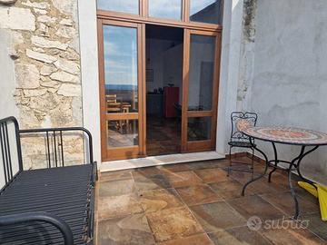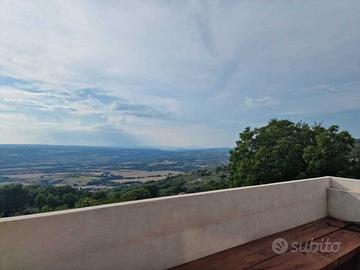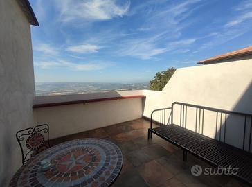 (Riferimento: GUARDEA45-1) Terra cielo con terrazzo panoramico A Guardea, un piccolo paese nella splendida Umbria, a circa mezz'ora di auto dalle famose città di Orvieto e Todi e circa un'ora da Roma, vendiamo un terra-tetto ristrutturato con terrazzo panoramico e un piccolo giardino. La casa si sviluppa su due piani con ingresso indipendente al piano terra, una camera matrimoniale, un ampio bagno, una seconda camera con accesso ad un piccolo appezzamento di giardino. Salendo la scala al primo piano troviamo il soggiorno con soffitto alto in legno, cucina a vista, un bagno di servizio, e un terrazzo di 17mq con vista mozzafiato a 180° sulla valle del Tevere con tramonti indimenticabili... La casa è stata completamente ristrutturata nel 2024, compreso il bellissimo tetto in legno. Luminosa, panoramica, ottima posizione con vista sulla campagna ma vicino ai servizi e al parcheggio. Alcune distanze: Servizi 400m, Orvieto 25km, Todi 35km, Roma Aeroporto di Roma 135 km