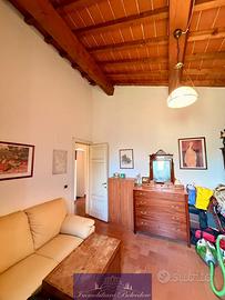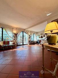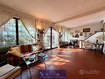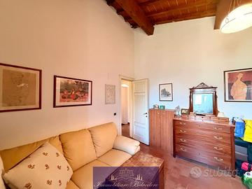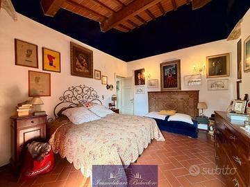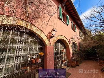 (Riferimento: a26069) a26069 - Lastra a Signa/Carcheri In elegante contesto residenziale ed immerso nel verde, IMMOBILIARE BELVEDERE propone in vendita porzione di villetta di metà '800 di 300 mq ca, sviluppata su due livelli e composta da: ingresso, ampio soggiorno, cucina abitabile, sala da pranzo, quattro camere da letto matrimoniali, camera da letto singola con tre servizi oltre a due vani studio e giardino privato di 800 mq ca. L'immobile gode di doppia esposizione, con piacevoli affacci sul giardino privato ed è composto da rifiniture tipiche toscane come i pavimenti in cotto, travi a vista con pianelle e soffitti a volta con mattoni a vista. Termosingolo classe energetica F. Completano la proprietà un terreno di 1.6 ettari con 150 ulivi e una nicchia storica del sedicesimo secolo.