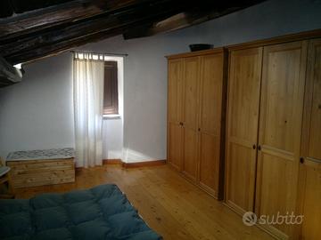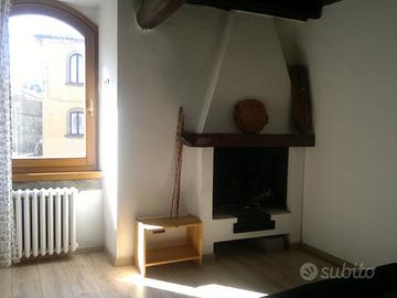 Rarità: suggestivo appartamento su due livelli con ingresso indipendente e vista spettacolare su San Pellegrino. 1. piano: grande soggiorno con cucina nuova, bagno ristrutturato con vasca, stanza-studio con camino, piccolo locale tecnico (guardaroba, lavatrice, caldaia). 2. piano: camera da letto mansardata + grande soppalco abitabile. Pavimenti in parquet di larice massello, particolari in pietra a vista. Parzialmente ammobiliata (cucina completa, armadi), caldaia e impianto gas nuovi e certificati. NESSUNA SPESA CONDOMINIALE. Essendo immobile storico, l'imposta di registro e l'IMU sono dimezzate. Facilità di parcheggio. ASSOLUTAMENTE NO AGENZIE.