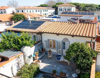 NOSTRA ESCLUSIVA: Marina Di Pisa, proponiamo un elegante terratetto di 165 mq con ingresso indipendente e grande terrazza abitabile. L'immobile, composto da 6 locali, si presenta in buono stato e rappresenta un'opportunità unica per chi cerca un'abitazione spaziosa e confortevole. Composto da ingresso al piano terra con accesso diretto al giardino di proprietà esclusiva sul retro, dove si trova una piccola dependance completamente ristrutturata divisa in bilocale (ideale per la stagione estiva). Al piano primo disimpegno, salone doppio con balcone, cucina grande con camino e grande terrazza abitabile, bagno. Al piano secondo abbiamo due camere matrimoniali ed una singola oltre a bagno principale. L' immobile si trova nel cuore di Marina di Pisa vicinissimo al mare al porto ed a tutti i servizi. Molto luminosa.