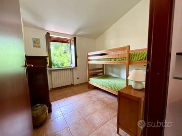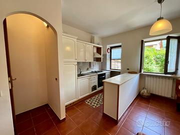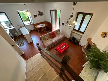 Al piano terra si accede ad un accogliente salone con camino e a un angolo cottura ampio e funzionale. Sempre sullo stesso livello è presente un bagno di servizio. La zona notte si sviluppa al primo piano con due camere da letto, una delle quali arricchita da un soppalco calpestabile in legno che amplia lo spazio disponibile, oltre a un ulteriore soppalco ad uso ripostiglio. Completa il piano il bagno principale con doccia.