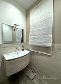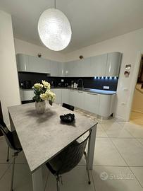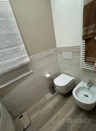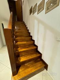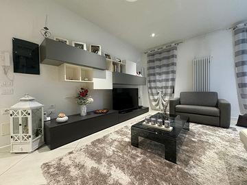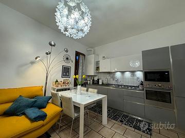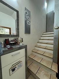 Varcando la soglia dell'appartamento più grande (130mq catastali) al piano terra si entra nell'ampio ed accogliente salotto, da cui è possibile l'ampia e ben rifinita cucina abitabile che ha l'accesso allo scoperto privato (caratterizzato da una graziosa zona barbecue), rientrando in cucina troviamo una piccola zona adibita a lavanderia e sempre al piano terra troviamo un bagno, salendo le scale a metà piano vi è un secondo utile bagno di servizio, salendo ancora veniamo accolti da una spaziosa zona notte composta da due ampie camere matrimoniali ed un ulteriore spazio adibito a cameretta.