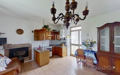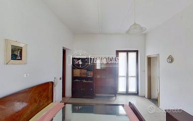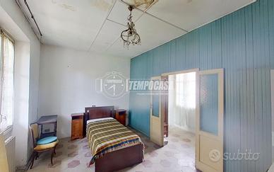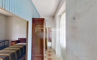 Al piano primo, invece, accessibile sia tramite scala interna che scala esterna, con affaccio sul balcone sfruttabile come sfogo esterno privato, troviamo un trilocale abitabile, parzialmente ristrutturato circa 30 anni fa, composto da soggiorno con cucina a vista, due camere e bagno.