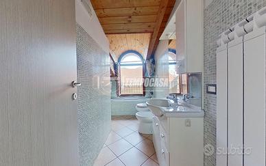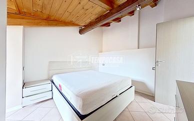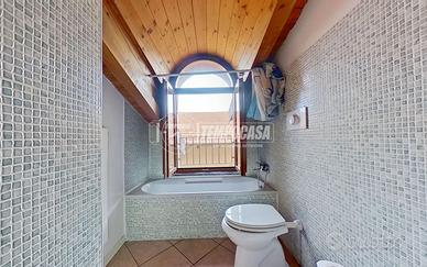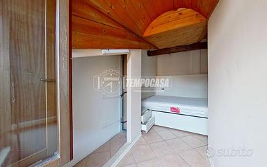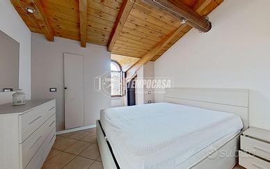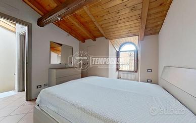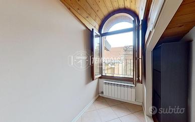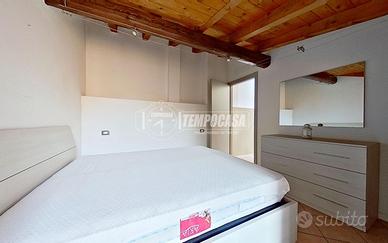 Al secondo piano, troviamo una camera da letto, ben dimensionata e arricchita da una cabina armadio che offre tanto spazio per organizzare tutto ciò che ti serve. Il bagno, finestrato e completo di vasca, è dotato di tutto il necessario per il massimo del comfort. Le travi a vista e le finestre centinate aggiungono un tocco di carattere, creando un ambiente caldo e intimo.