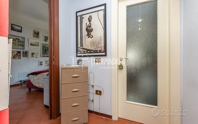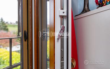 Sulle scale troviamo una porta-finestra che ci porta nel sottotetto che è stato recentemente perlinato.
