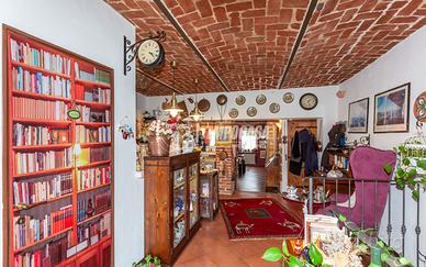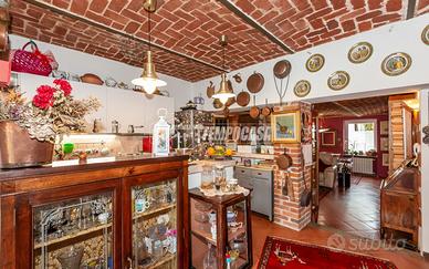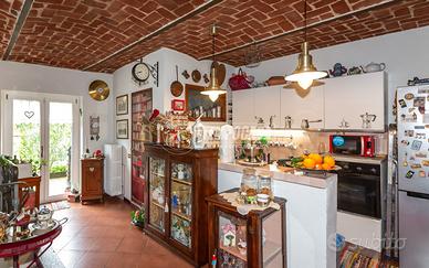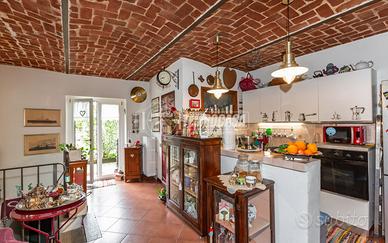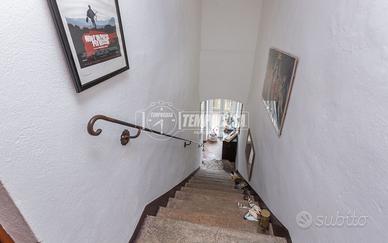 Attraversando il cortile, impreziosito da una splendida passeggiata con vista, accediamo all'ingresso dell'immobile. Qui troviamo la cucina abitabile, un ampio soggiorno valorizzato da splendido soffitto a volta, ripostiglio ed un servizio.