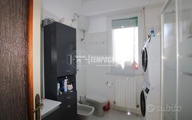 L'appartamento è composto da: ingresso, soggiorno e cucina abitabile, entrambi con uscita sul balcone, corridoio notte, bagno finestrato e due camera matrimoniali. Completa la proprietà una spaziosa cantina di 18mq al piano seminterrato.