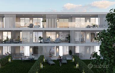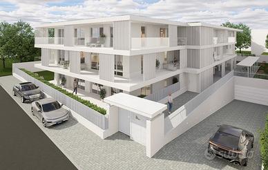 "The White Residence" è composto da due corpi di fabbrica e dispone di un parcheggio interrato con annessi locali cantina, posti auto e parcheggi e-bike al piano terra. Ogni appartamento avrà il proprio giardino privato, terrazzi o logge.