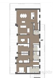 Questo attico al 2° piano è composto da ingresso, soggiorno e zona pranzo, quattro camere da letto e due bagni. Terrazzo e cantina completano l'offerta. Garage al piano interrato sono disponibili come opzione ad un costo aggiuntivo.