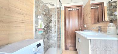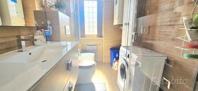 L'appartamento, molto luminoso ad ogni ora del giorno grazie alla sua tripla esposizione e alla sua vista aperta, è completo di porta d'ingresso blindata, climatizzatori, inferriate e zanzariere su tutte le finestre. L'immobile di 70 mq ca. è sito al primo piano ed è composto da: un comodo ingresso e disimpegno, soggiorno con angolo cottura con accesso ad un ampio balcone angolare, due camere da letto di cui una con accesso al secondo balcone, un elegante bagno con doccia con rivestimenti in pietra ed un comodo soppalco presente nel disimpegno. Il tutto recentemente ristrutturato con accurata e qualitativa attenzione ai dettagli.