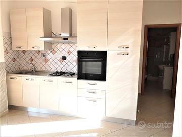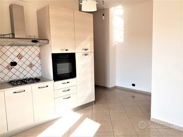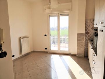 soggiorno con angolo cottura, camera matrimoniale, bagno con box doccia e balcone perimetrale accessibile sia dalla zona giorno che dalla camera.