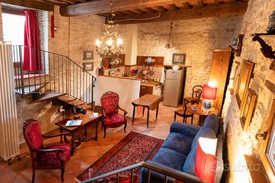 Appartamento di prestigio in Torre Medievale nel Castello di Sassoferrato - PT: ingresso e lavanderia indipendente; P1: salotto con ampia zona cottura, comodo balcone; P2: camera con letto matrimoniale, bagno, cabina armadio. Completamente arredato con mobili di antiquariato. Adatto a coppia o single NON RESIDENTI con contratto ad uso transitorio annuale - prezzo 500 euro/mese anticipato, comprensivo di acqua, spazzatura e copertura internet. Le utenze di gas e luce restano intestate alla proprietà mentre il locatario ne assumerà l'onere integrale attraverso il rimborso al locatore della documentata spesa. Richieste pertanto massime referenze e deposito di due mensilità anticipate a garanzia del rimborso delle utenze in base al consumo gestito dal locatario stesso. Prevista lettura dei contatori in ingresso ed uscita.