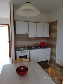 Spazi interni accoglienti : soggiorno/pranzo ...luminoso con angolo cottura, bagno con finestra ,box doccia , lavatrice, camera da letto matrimoniale con finestra, più una cameretta con la possibilità di mettere un letto a castello sempre con finestra, ampio balcone...perfetto per pranzi e cene all' aperto !!