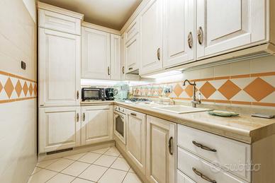 Il soggiorno accoglie con proporzioni equilibrate e si collega al terrazzo, uno spazio esterno da vivere con discrezione, perfetto per ritagliarsi momenti di relax lontano dal caos. La cucina, separata dal living, offre praticità e accesso diretto al secondo balcone, garantendo una gestione funzionale della quotidianità.